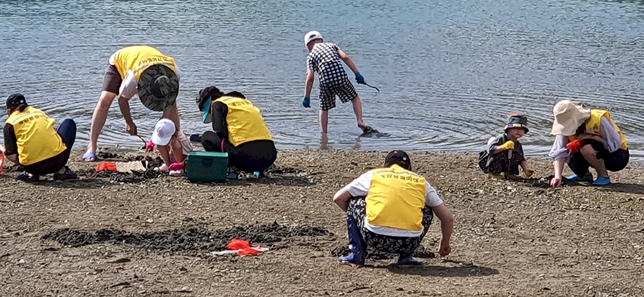 바닷가에서 즐기는 재미있는 바지락 캐기 체험